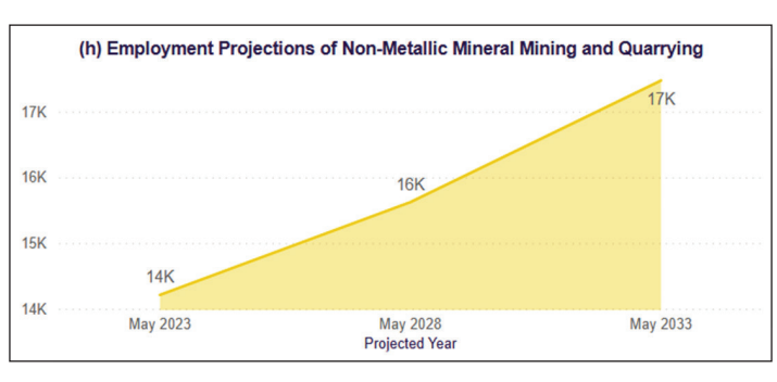 The Non-Metallic Mineral Mining and Quarrying sector currently employs over 14,800 workers, reflecting an increase of 970 (+7%) total workers.66 Full and part-time workers saw an increase of 460 (+3%) and 520 (+38%), respectively.