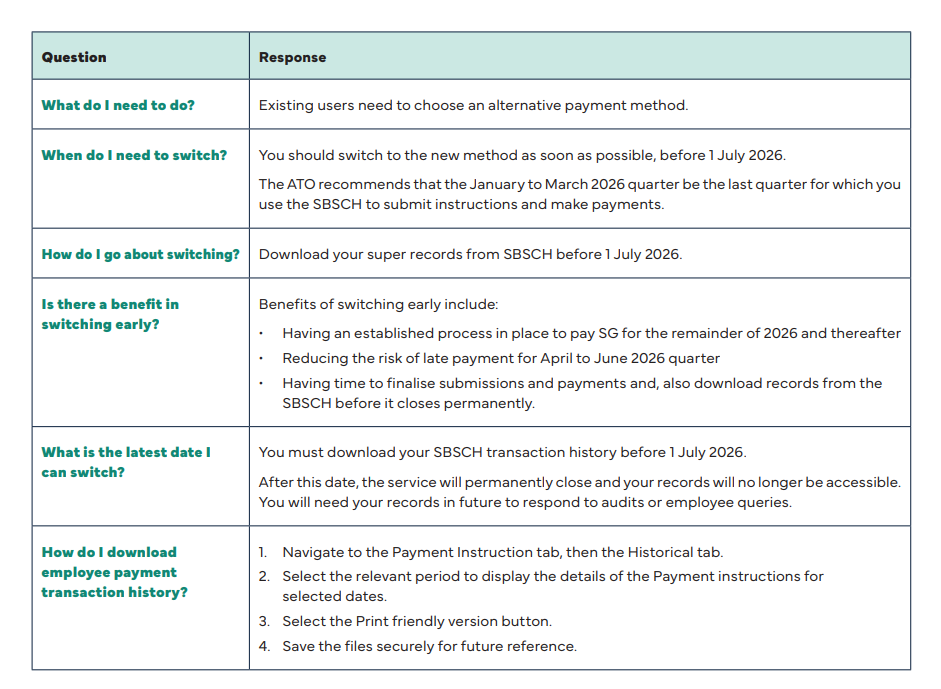 The Small Business Super Clearing House (SBSCH) is closing permanently from 1 July.