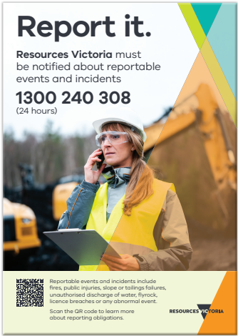Resources Victoria developed notes to provide clear guidance about the requirements to report any reportable event in an appropriate, timely manner which can be found at Resources Victoria